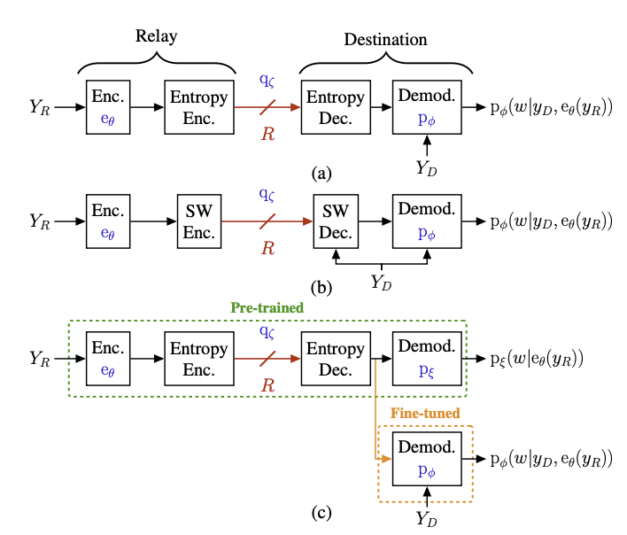 Building on insights from distributed compression, this work extends to cooperative communication, specifically the compress-and-forward (CF) relaying strategy. In this setting, relay nodes compress and forward their received signals while exploiting inter-signal correlations at the receiver. The proposed learning-based CF methods [6], [7] recover solutions close to the theoretical optimum and significantly improve spectral efficiency and throughput—key requirements for 6G systems.