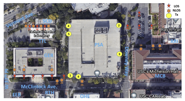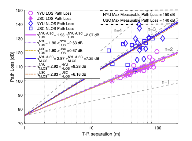 NYU WIRELESS has conducted pioneering measurement campaigns to generate fundamental knowledge of wireless propagation across the radio sprectrum, spanning the lower and upper mid-band frequencies [1]-[8] to millimeter wave (mmWave) [9]-[13] and sub-Terahertz (sub-THz) [14]-[16]. mmWave conventionally refers to frequencies between 30 and 300 gigahertz (GHz) and THz to frequencies between 300 GHz and 3 THz. The term sub-THz is now widely used to refer to frequencies between 100 to 300 GHz. Currently, very little is known about the radio channel inside buildings or in the urban, suburban or rural outdoor settings where future cellular, Wi-fi, and fixed fiber-like radio links will operate.